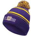 Two layers of 100% acrylic knit * Two-color pom pom accent * Foldover cuff * Close-fitting * Stretches to fit most